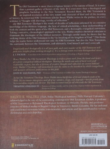 The Old Testament is more than a religious history of the nation of Israel. It is more than a portrait gallery of heroes of the faith. It is even more than a theological and prophetic backdrop to the New Testament. Beyond these, the Old Testament is inspired revelation of the very nature, character, and works of God. As renowned Old Testament scholar Bruce Waltke writes in the preface of this book, the Old Testament’s every sentence is “fraught with theology, worthy of reflection.”This book is the result of decades of reflection informed by an extensive knowledge of the Hebrew language, the best of critical scholarship, a deep understanding of both the content and spirit of the Old Testament, and a thoroughly evangelical conviction. Taking a narrative,chronological approach to the text, Waltke employs rhetorical criticism to illuminate the theologies of the biblical narrators. Through careful study, he shows that the unifying theme of the Old Testament is the “breaking in of the kingdom of God.” This theme helps the reader better understand not only the Old Testament, but also the New Testament, the continuity of the entire Bible, and ultimately, God himself.